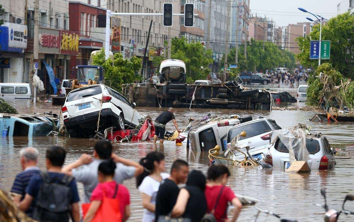Un véritable déluge s’est abattu sur la ville de Zhengzhou, dans le centre de la Chine. En 24 heures, une averse y a relâché 201,9 mm de pluie. C’est un record national chinois. En trois jours, c’est près de 720 mm d’eau qui sont tombés du ciel sur la région, soit l’équivalent d’une année de pluie. Ce déversement historique a fait au moins 302 morts dans la province du Henan, causant pour plus de 24 milliards $ en dommages.