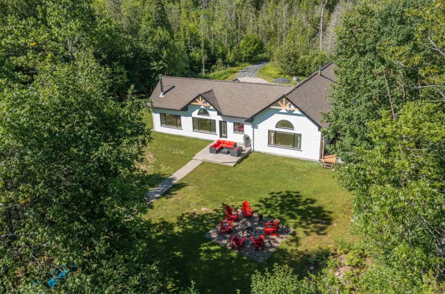 Si vous désirez trouver un endroit où vous retrouver en famill ou avec une petite gang d'amis, ce chalet dans les Laurentides est idéal. Dix voyageurs peuvent y séjourner grâce au 5 lits lits disponibles dans la propriété. Un minimum de cinq nuit est requis pour faire une réservation toutefois.