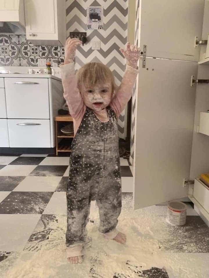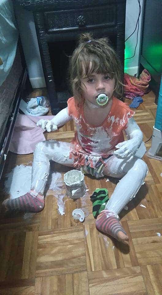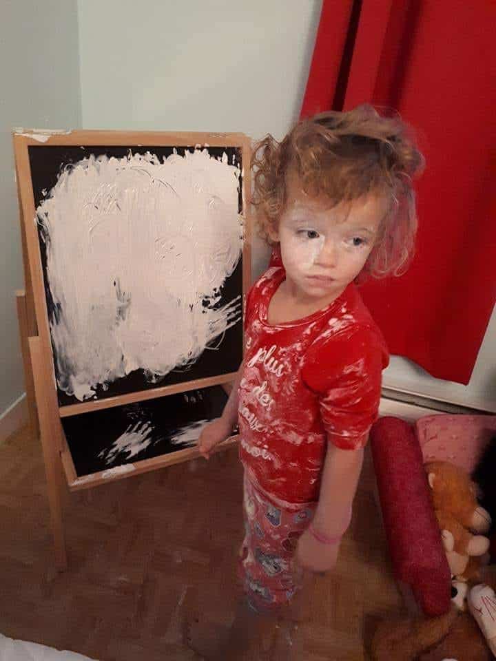 « Élie qui fait un beau tableau avec la pâte d'huile »