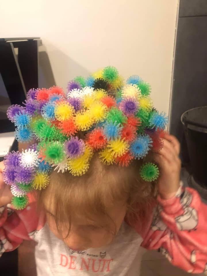 « 20 boules piquantes pris dans les cheveux de ma fille. Un vrai bonheur. La coupe de cheveux a passée proche »