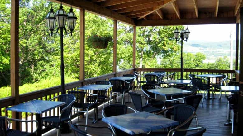 Au Pub le Mitan, un sympathique pub à l'anglaise situé à Sainte-Famille, il fait bon savourer une bière artisanale sur la terrasse avec vue sur le fleuve. Une halte décontractée toute en saveurs!