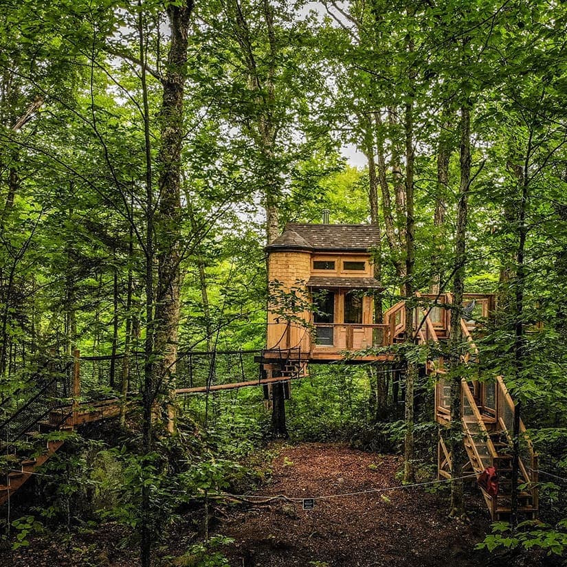 Avec un tel nom, pas surprenant que cette maisonnette des Pieds sur terre se retrouve sur notre liste. Perché dans les arbres et doté d’un pont et d’une plateforme suspendus, le Nid d’Elfe peut accueillir de 4 à 6 personnes. Vous y découvrirez un décor rustique fantaisiste, une mezzanine avec deux grands lits, une salle de bain rustique et un jacuzzi extérieur privé. À Saint-Calixte.