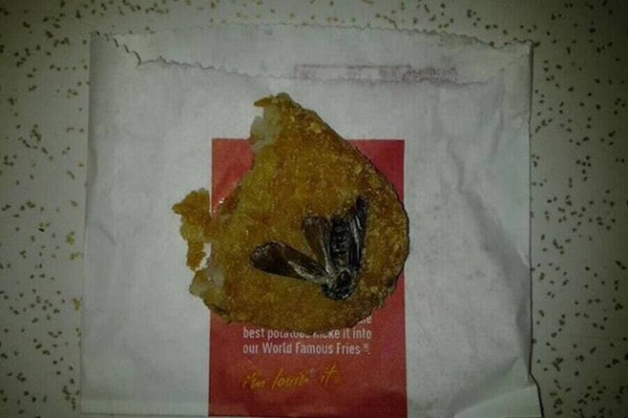 Un utilisateur du site web Reddit a écrit avoir trouvé une coquerelle dans sa patate à déjeuner de chez McDonald's. Lorsqu’il est retourné au restaurant avec sa trouvaille pour la montrer au gérant, il a reçu un repas gratuit pour la prochaine fois.