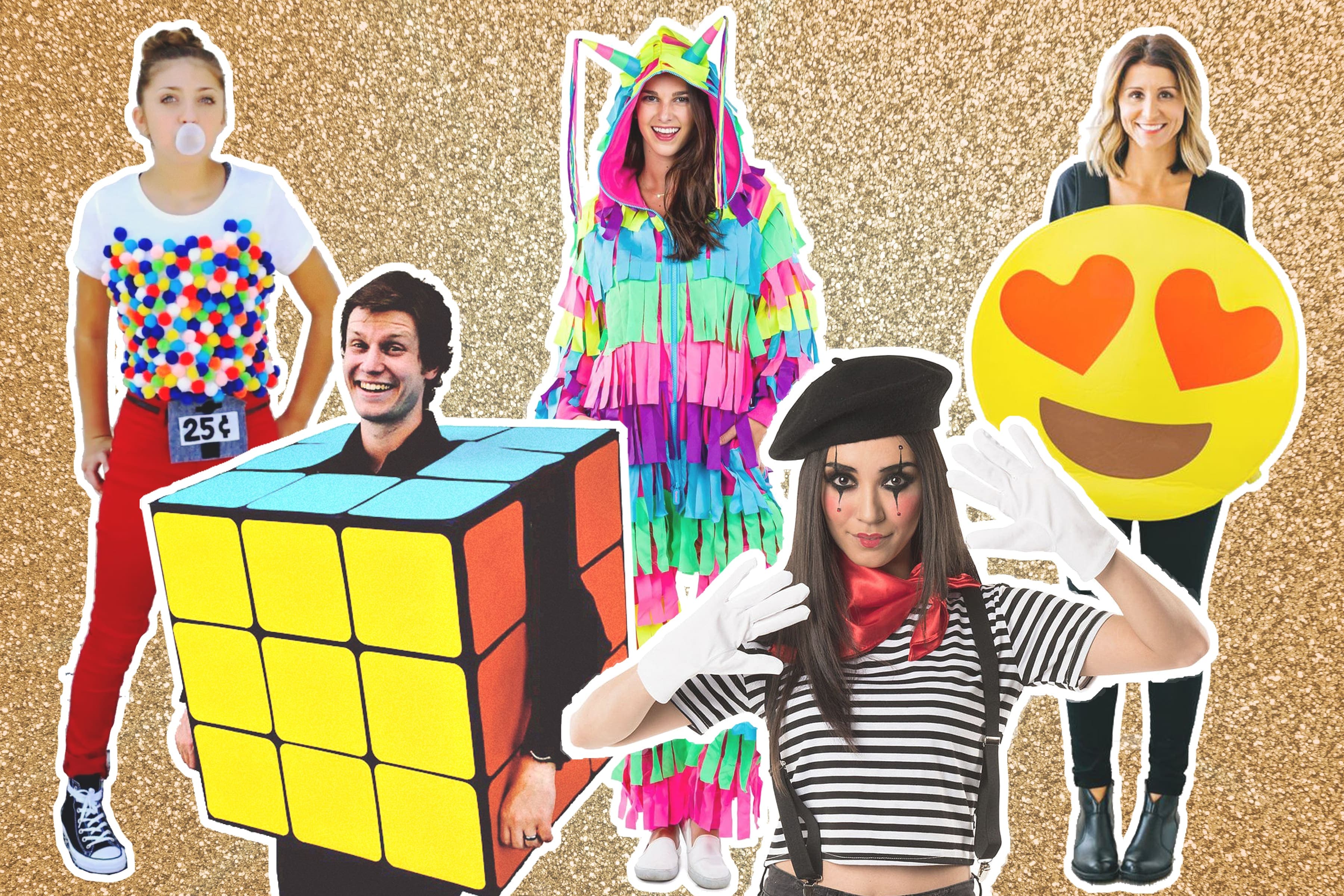 Collez des pompons multicolores sur un haut blanc, portez-le sur un pantalon ou une jupe rouge et ajoutez une affichette où vous aurez inscrit «25 ¢» au marqueur noir et place au mystère et boule de gomme!