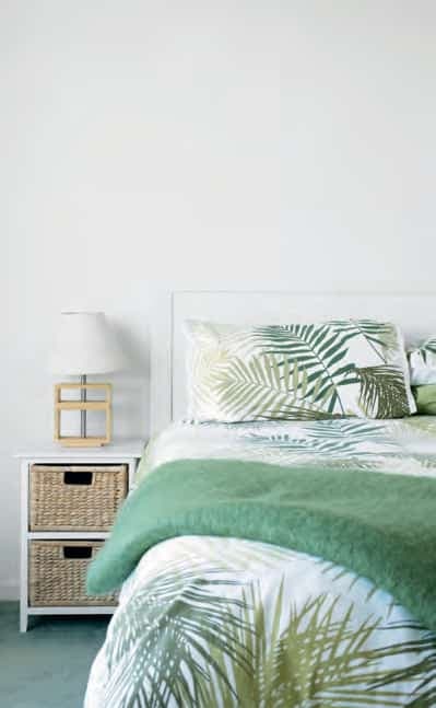 On met le cap sur une contrée luxuriante sans sortir du confort de ses draps en s’offrant un ensemble de literie à dessins de fougères. Parmi les motifs en vogue, on note le retour des petites fleurs, les carreaux (vichy ou maxi), les rayures de largeurs variées, les gros imprimés botaniques, les motifs folks et bohèmes.