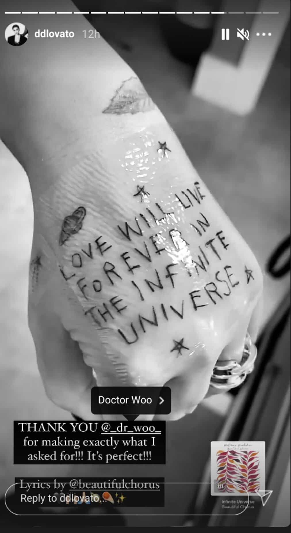 Pour célébrer son 29e anniversaire, Demi a opté pour des paroles de la chanson Infinite Universe par le groupe musical Beautiful Chorus.