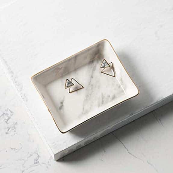 Ce joli plateau effet marbre sera un magnifique objet de décoration pratique pour y ranger des bijoux, du maquillage, ou toute autre chose.