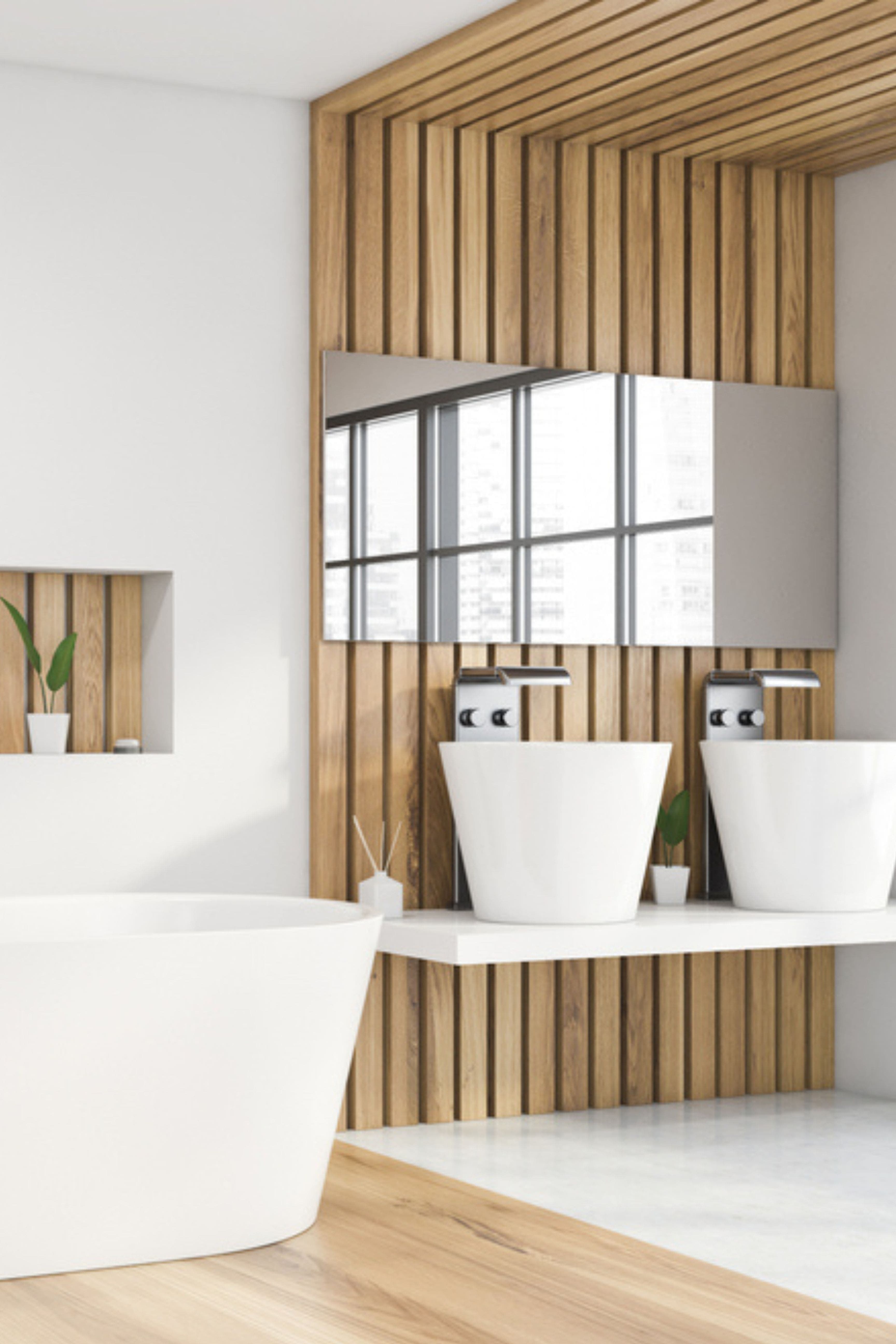 2. Une touche de boiserie dans la salle de bain