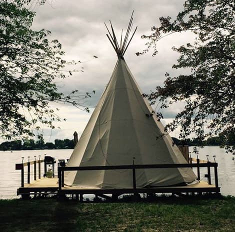 Au Domaine Pourki, il est possible de passer la nuit dans un tipi flottant, sur la rivière Richelieu. Matelas et trappe pour pêcher vous attendent à l’intérieur de la «tente». À l’extérieur, vous aurez votre BBQ et votre terrasse (et une toilette sèche). Et vous vous rendrez au tipi en canot!
