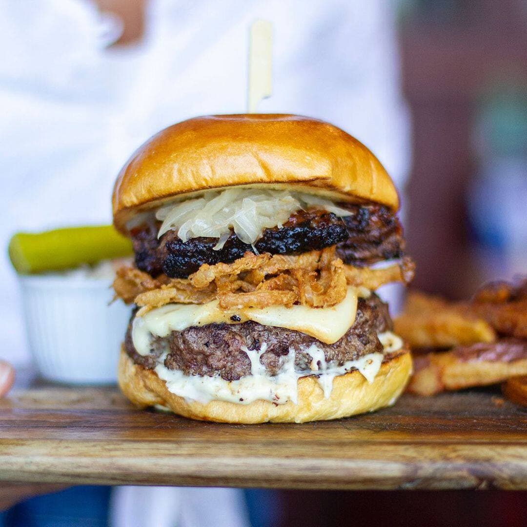 4. Le burger garni aux oignons croustillants de la Brasserie des Rapides