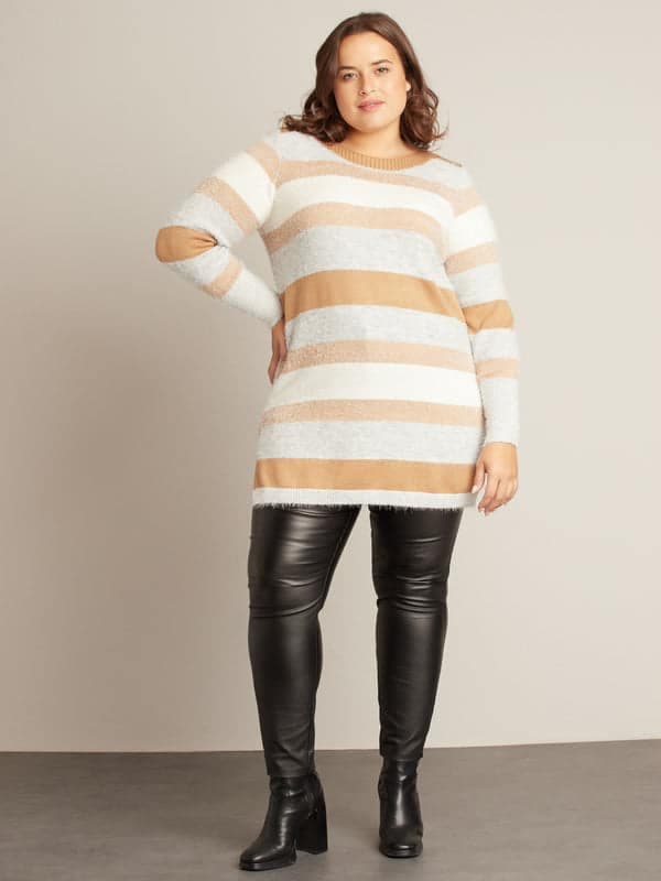 Ce magnifique pull rayé aux couleurs vibrantes saura rehausser votre humeur à coup sûr lors des journées grises, en plus de vous garder au chaud. De plus, sa coupe semi-ajustée mettra en valeur votre silhouette!