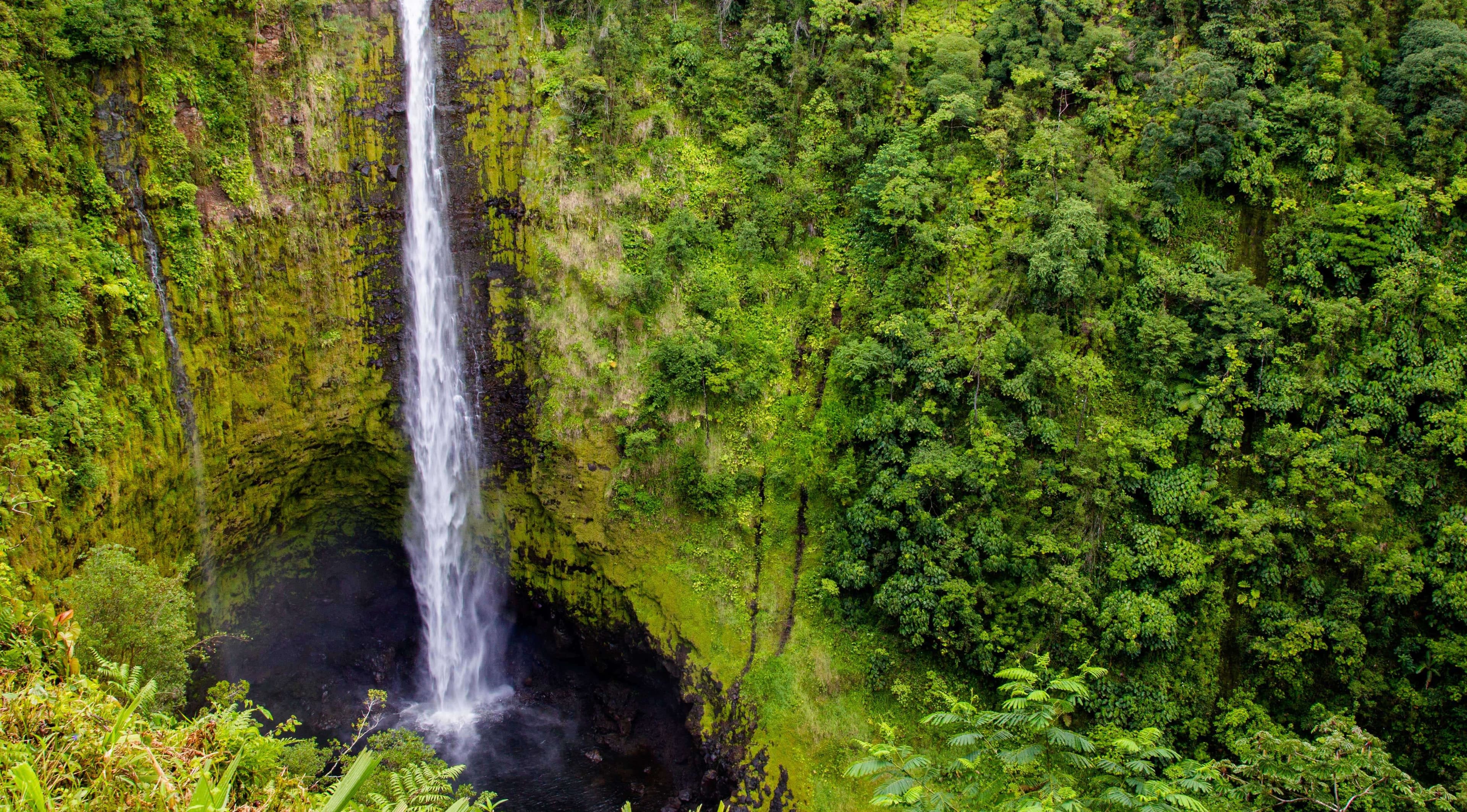 C'est par une courte randonnée pédestre (0.6 km) que l'on rejoint la chute d'Akaka, l'une des plus célèbres de l'Île d'Hawaii. Pour y arriver, il faut traverser un vrai jardin tropical peuplé d'orchidées sauvages, de bambous et de fougères. Finalement, la forêt dévoile une chute, qui dévale 135 m dans une gorge érodée par l'eau et le temps.