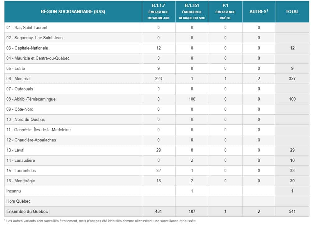 L'INSPQ confirme 19 nouveaux cas de variants au Québec.