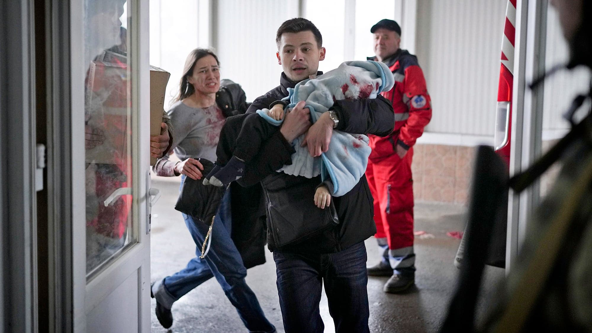 Cette dernière et l’Associated Press ont capté des images bouleversantes de ce couple à leur arrivée en panique dans un hôpital de Marioupol. Ils transportaient un bébé inanimé recouvert de couvertures ensanglantées.
