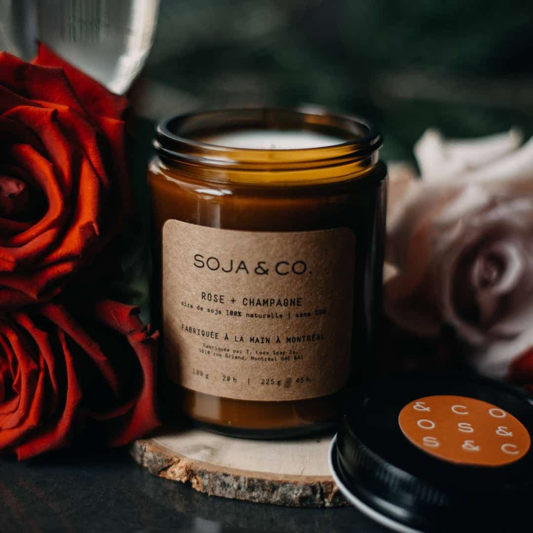 Soja & Co. est une entreprise montréalaise qui a maintenant une boutique au Quartier Dix30. La fragrance Rose + Champagne est vraiment passe-partout grâce à ses notes de champagne, de pêche, de rose et de poire. C’est frais et réconfortant à la fois.