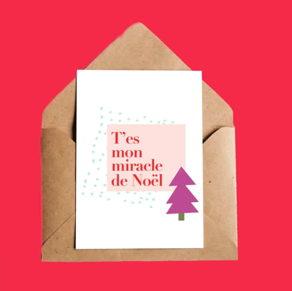 Sans surprise, le studio créatif montréalais vend des cartes de souhaits des Fêtes aux couleurs pastels et elles sont tellement jolies! Il est possible de les acheter à l’unité et de commander un paquet de 8 cartes.