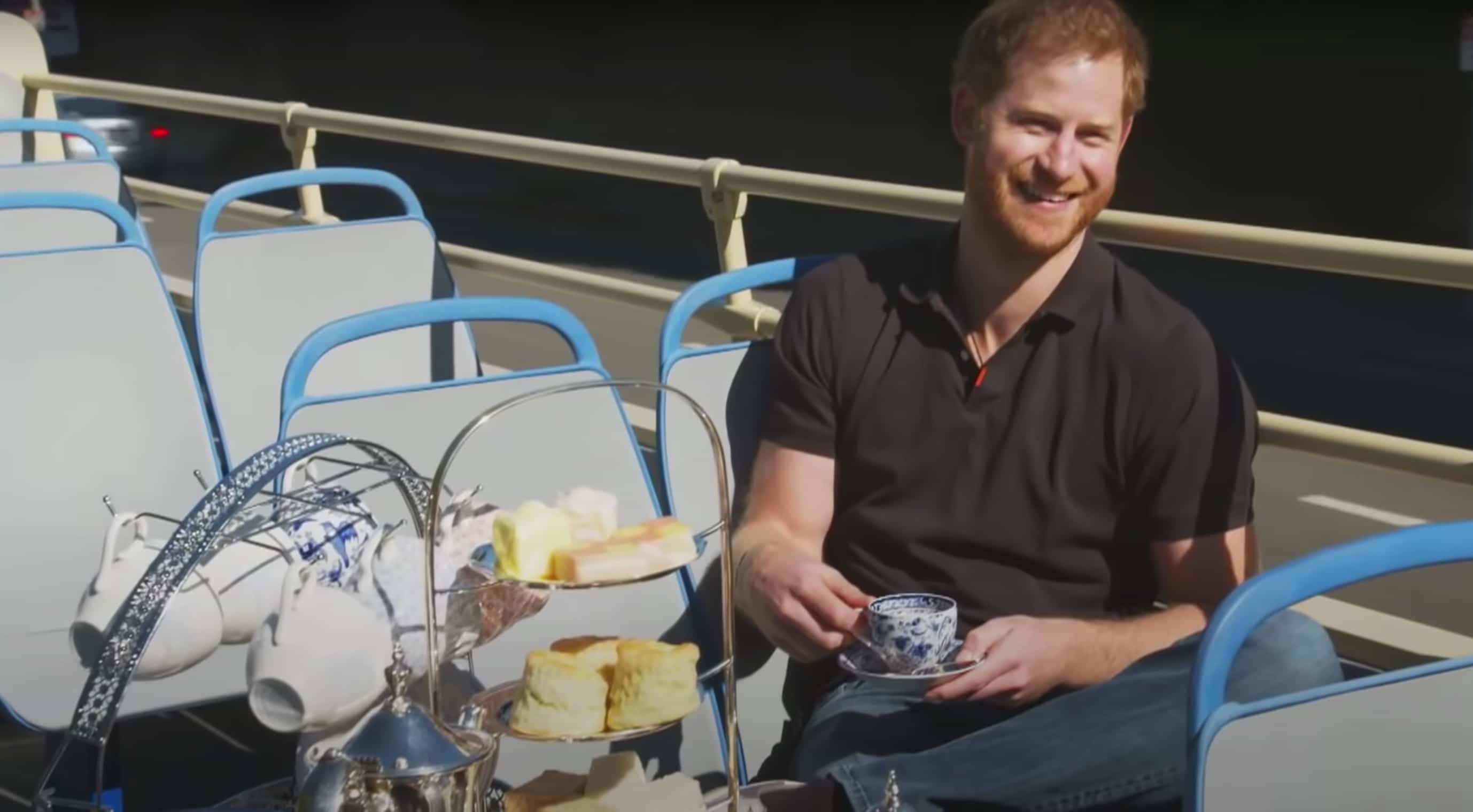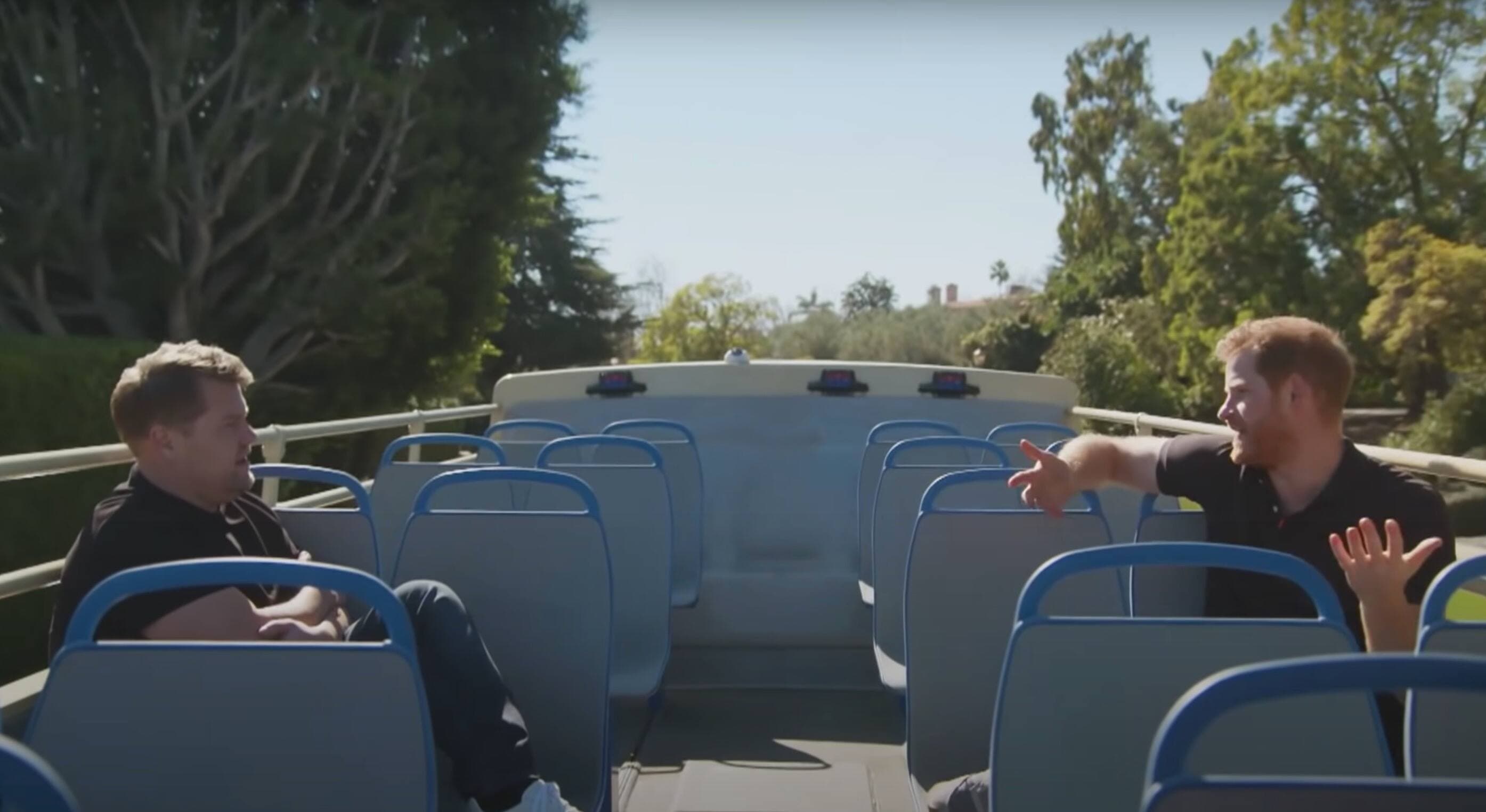 L'entrevue s'est déroulée en majeure partie dans un autobus touristique à toit ouvert, ce qui a permis à Harry de découvrir un peu la ville qu'il n'avait pas encore pu visiter en raison de la pandémie.
