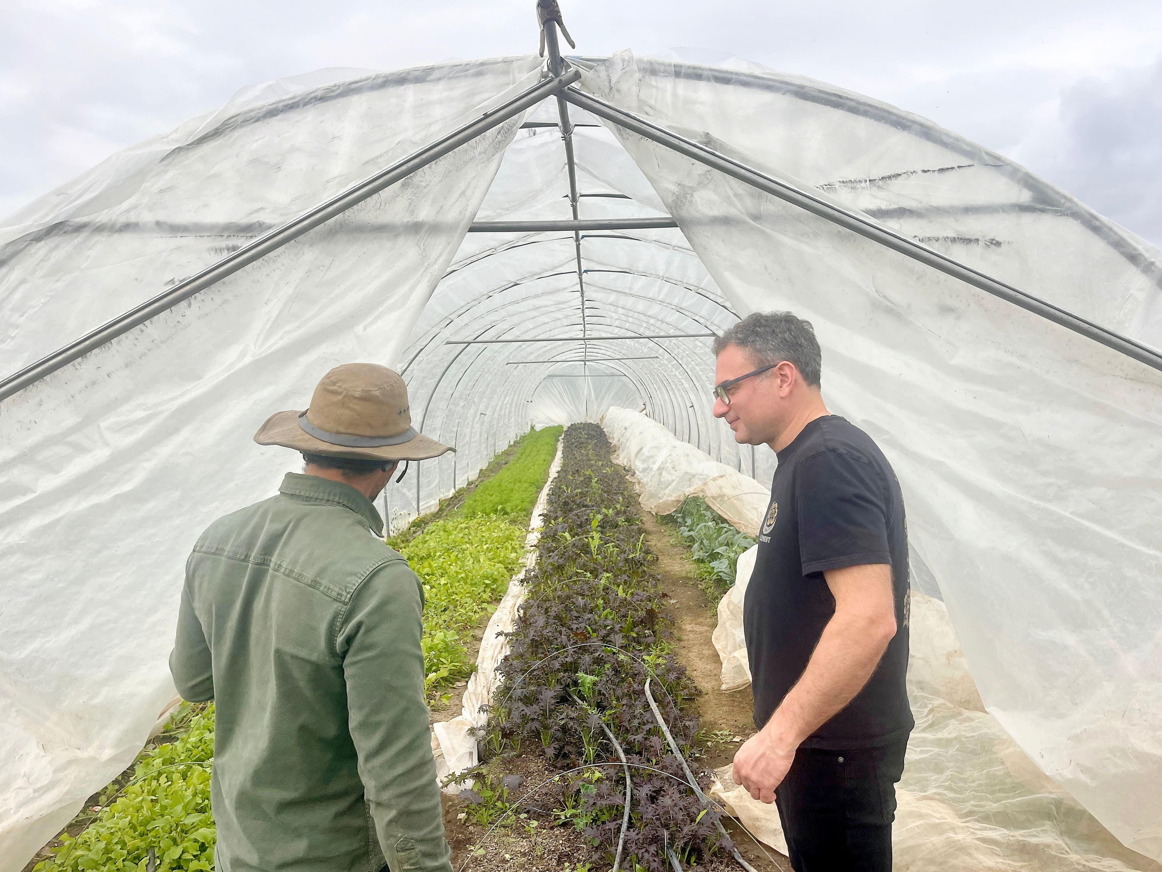 Pas question de rester à l’hôtel pour notre rencontre : Albert Ponzo décide plutôt de m’emmener directement à la source, soit à la Edwin County Farms, à une vingtaine de minutes du Royal.