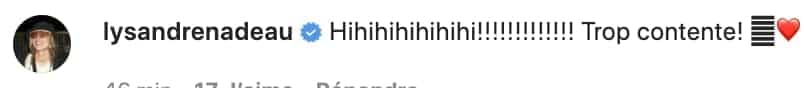 Lysandre Nadeau, qui a annoncé elle aussi sa grossesse la veille sur les réseaux sociaux et dans un magnifique vidéo, a pris le temps de féliciter son amie.