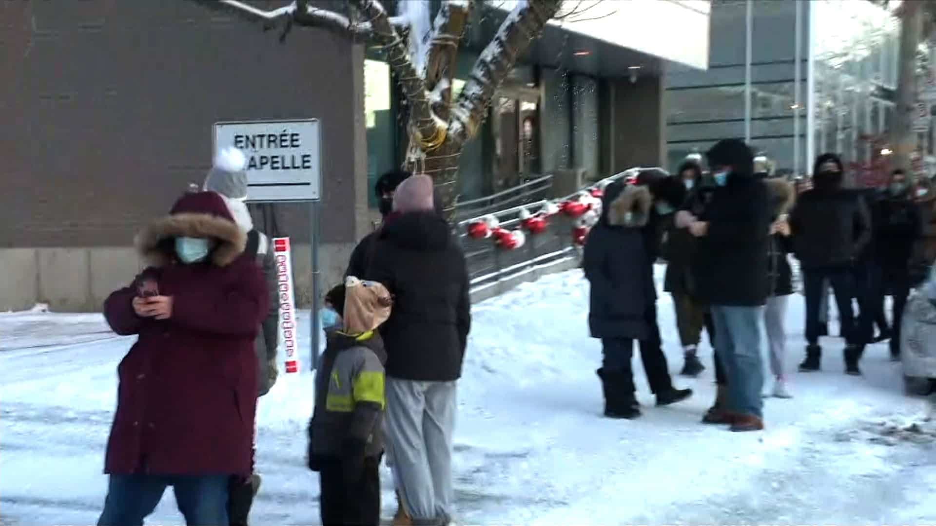 La file d’attente afin de se faire tester pour la COVID-19 à la clinique de dépistage Chauveau dans l’est de Montréal était toujours très longue lundi, et ce, malgré une température glaciale avoisinant les -20°C.