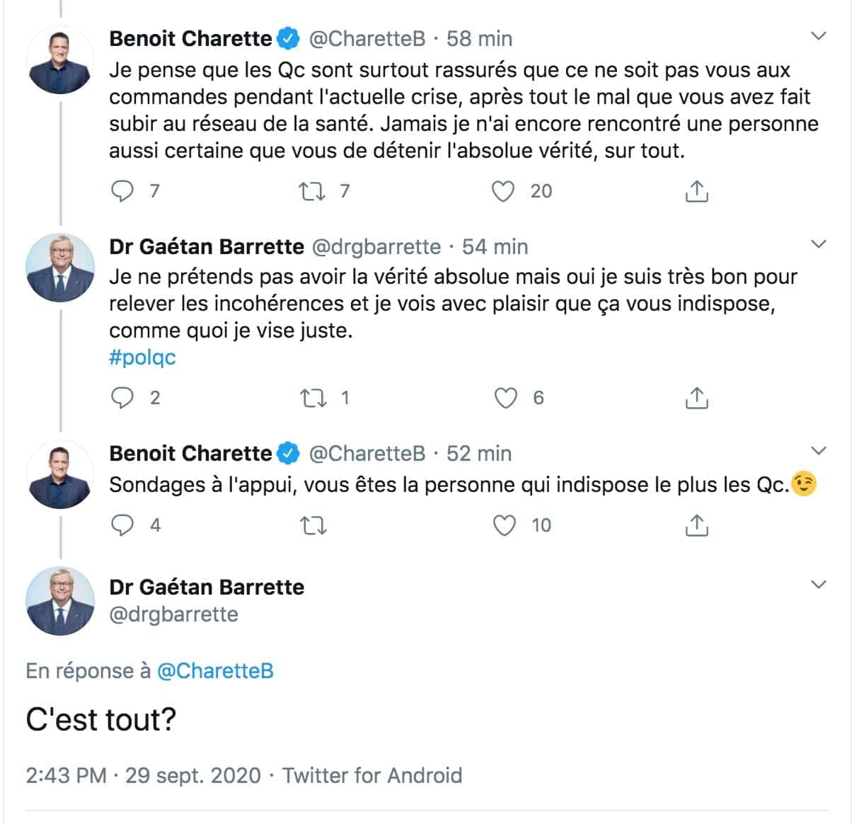 Gaétan Barrette et Benoit Charette se chamaillent sur Twitter