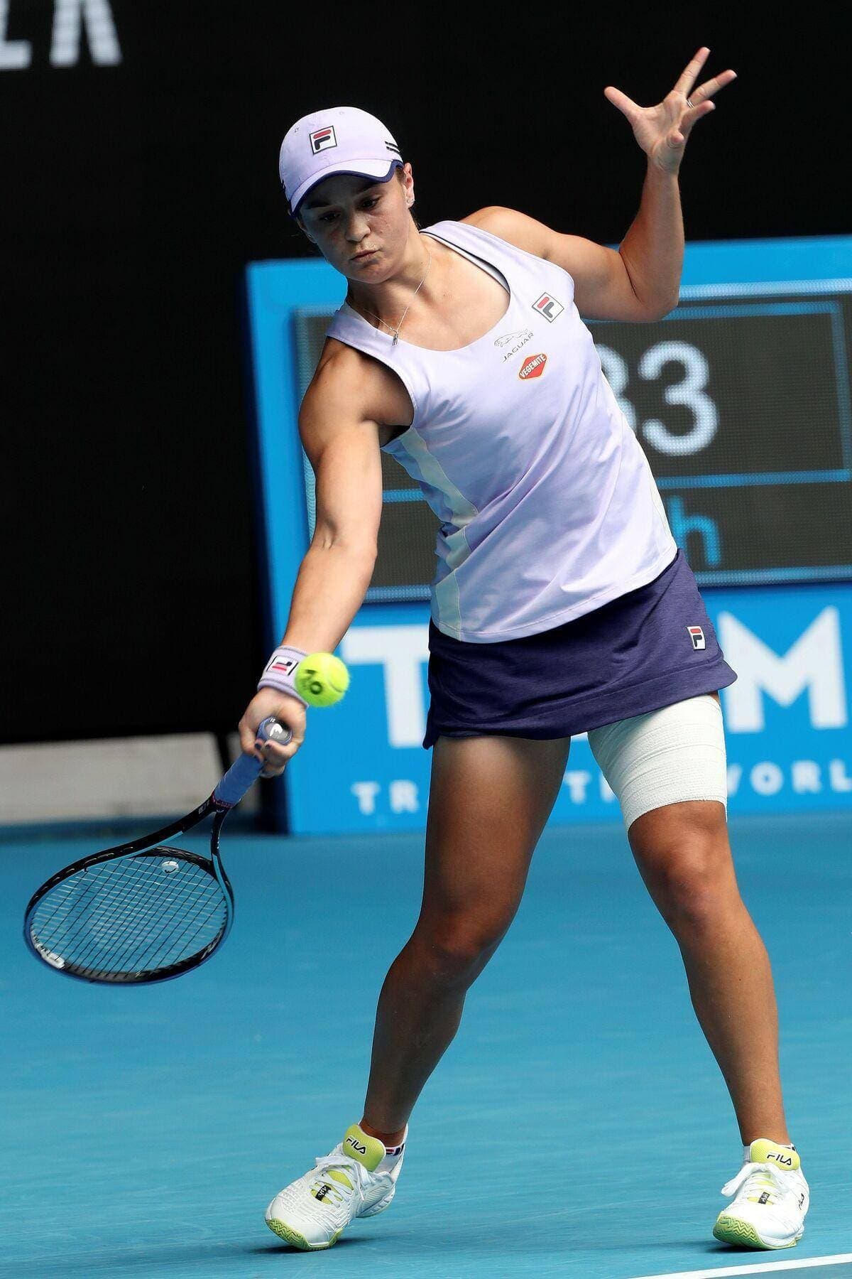 Après un premier set conclu en seulement 27 minutes, où elle avait notamment enchaîné 6 jeux d’affilée, Barty, qui arborait un gros bandage à la cuisse gauche, a semblé perdre le fil en fin de deuxième manche.
