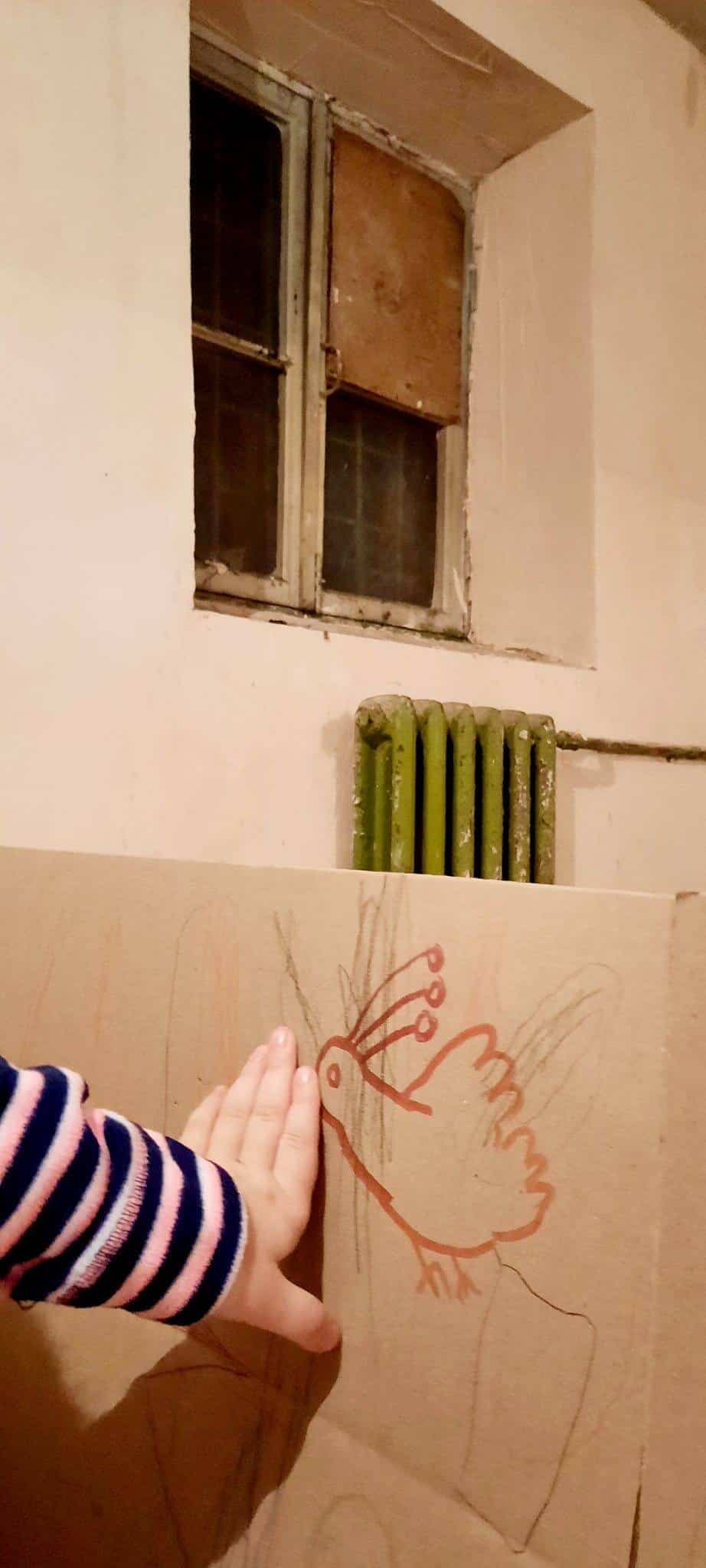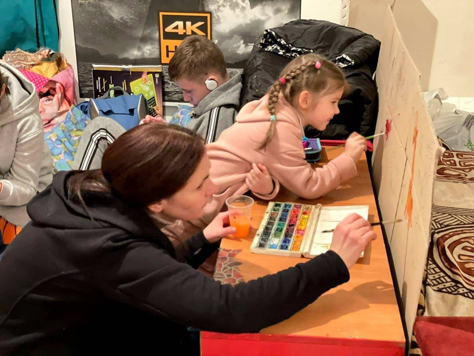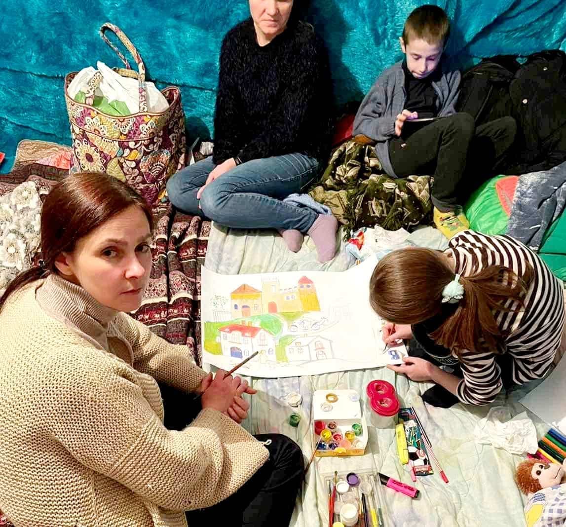 Nous essayons de rester à l’intérieur et d’aider nos soldats en fabriquant des filets de camouflage. Avec les enfants, nous peignons, nous dessinons et nous lisons. Nous essayons de les occuper.