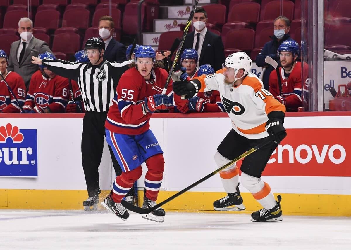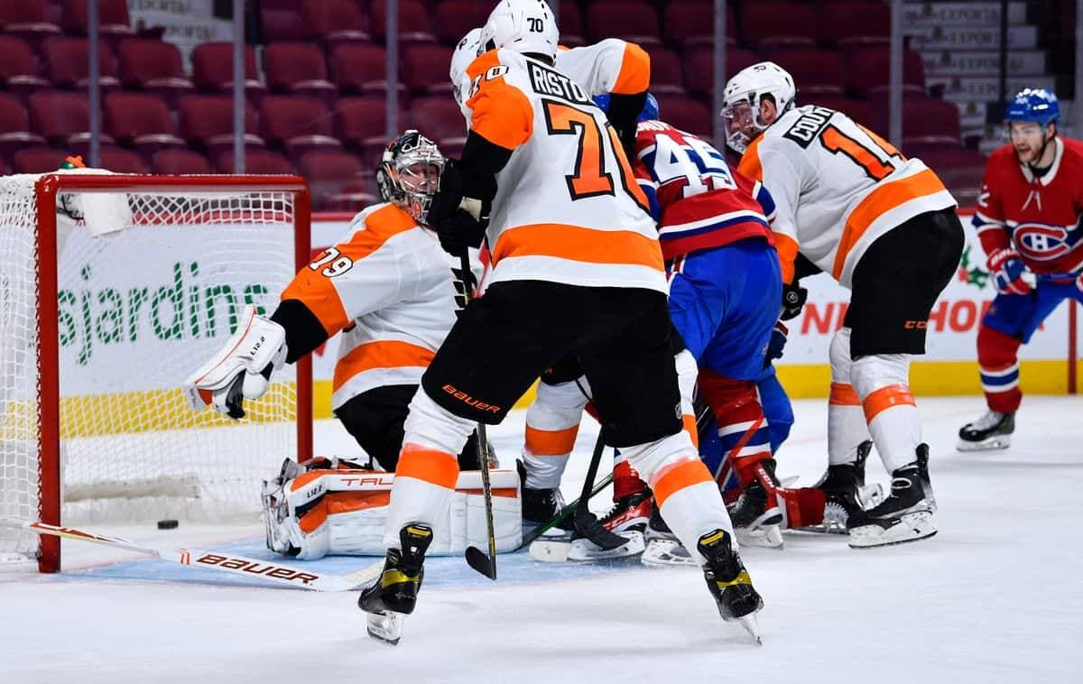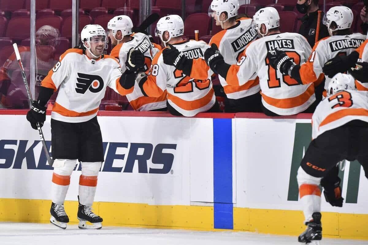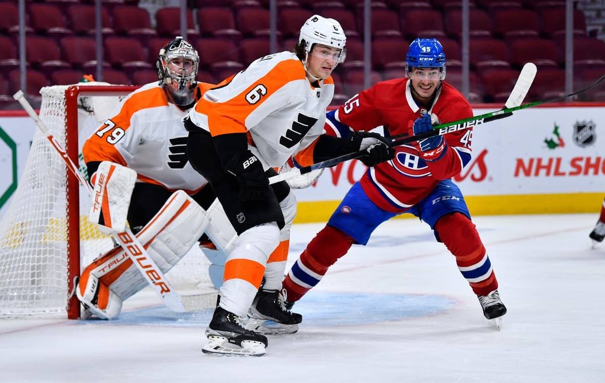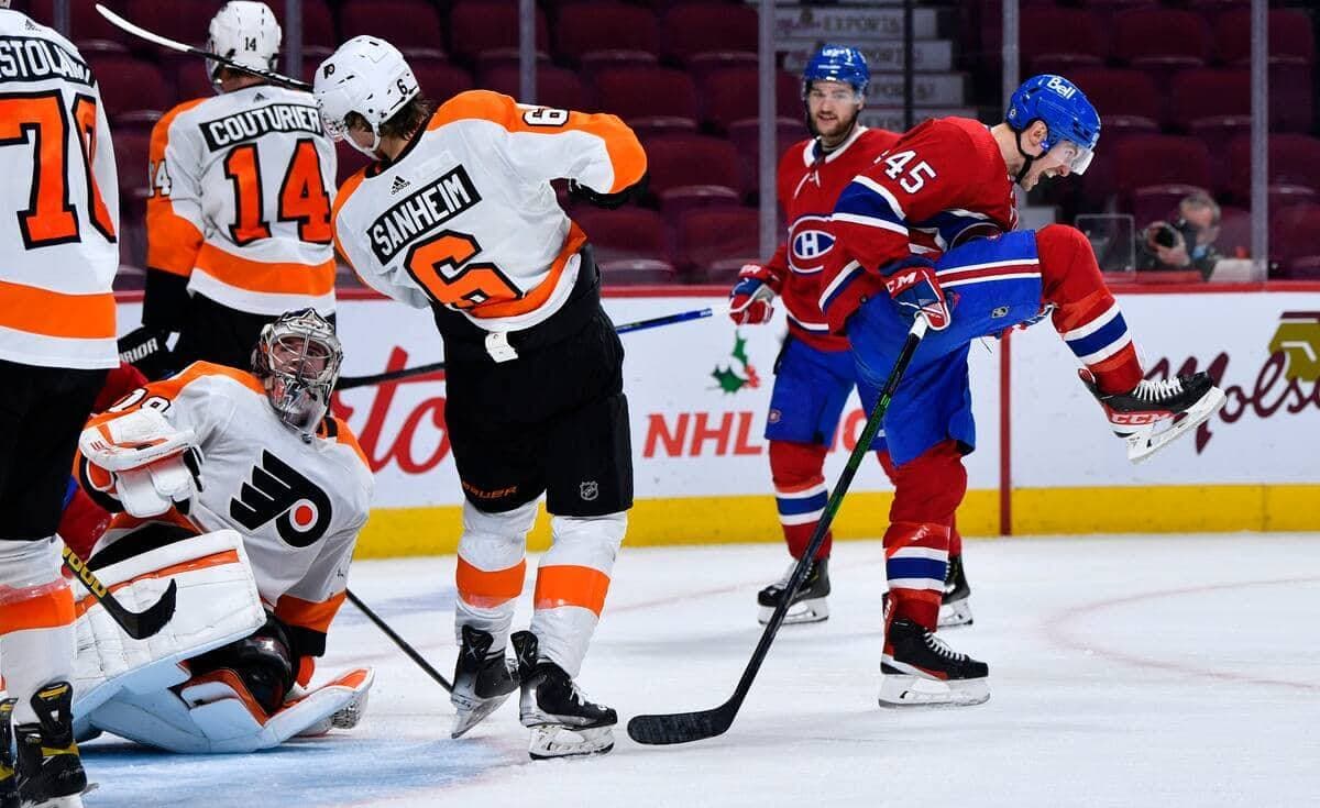 Vous n’avez jamais entendu les noms des deux buteurs des Flyers ? Ne vous en faites pas, nous non plus. Respectivement âgés de 26 et 24 ans, Max Willman et Jackson Cates n’ont qu’une mince expérience dans le circuit Bettman. Cates a profité de son passage au Centre Bell pour inscrire le premier but de sa carrière. Dommage qu’il n’y avait personne pour célébrer.