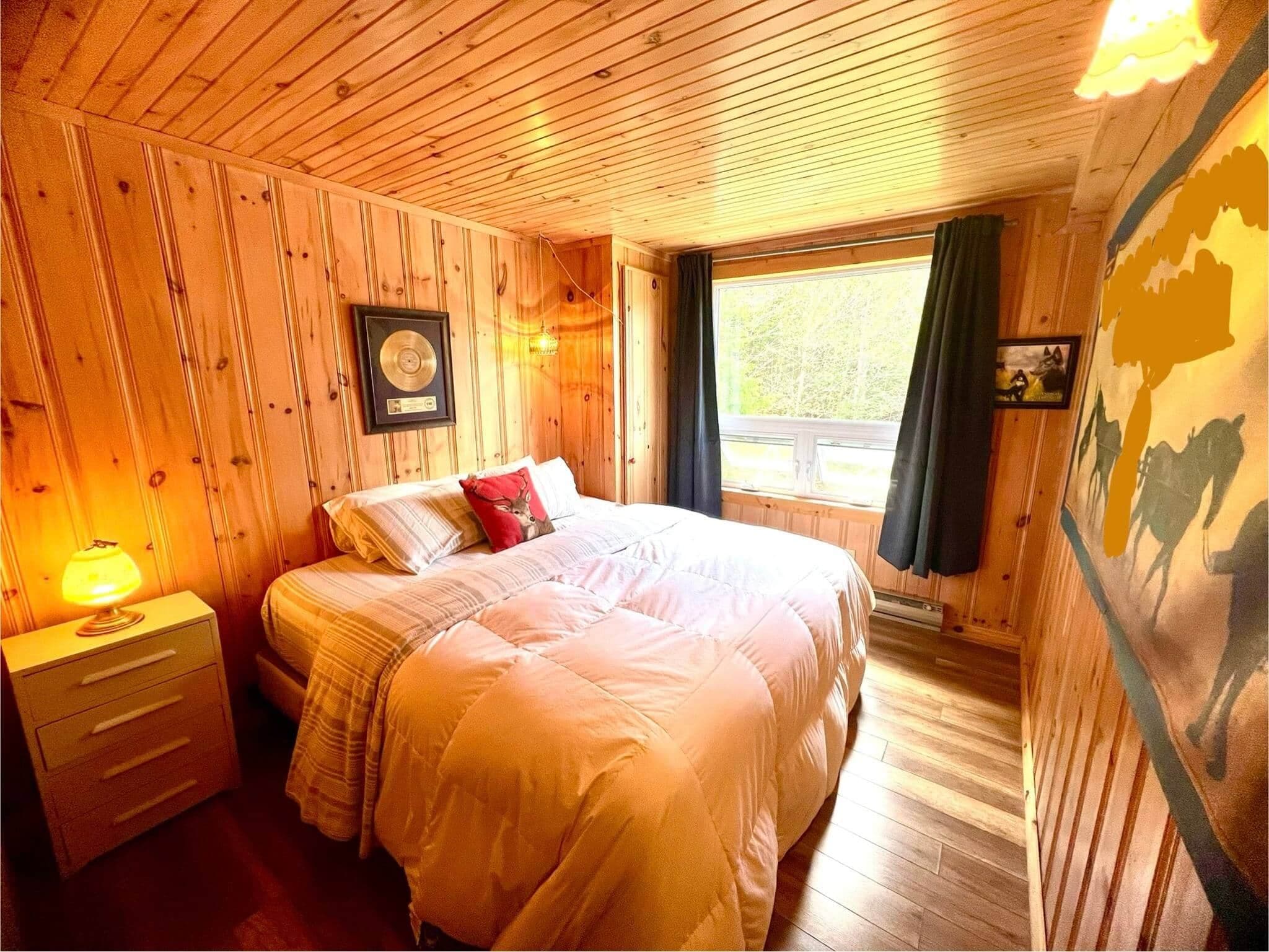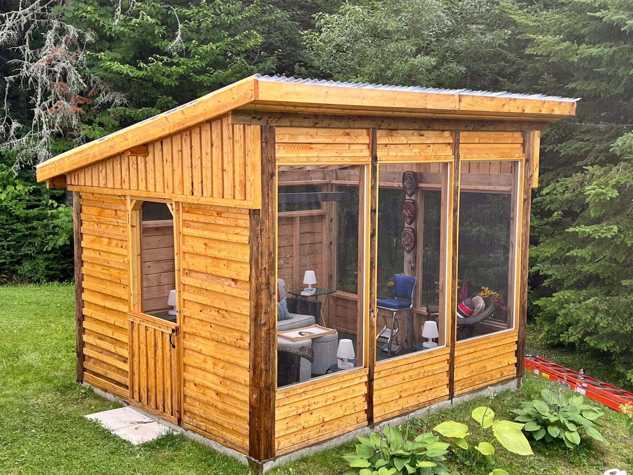 La bâtiment, doté de deux chambres fermées, un lit à mezzanine, un sauna chauffé au bois et un gazebo, est situé sur un terrain de 40 000 pieds carrés.