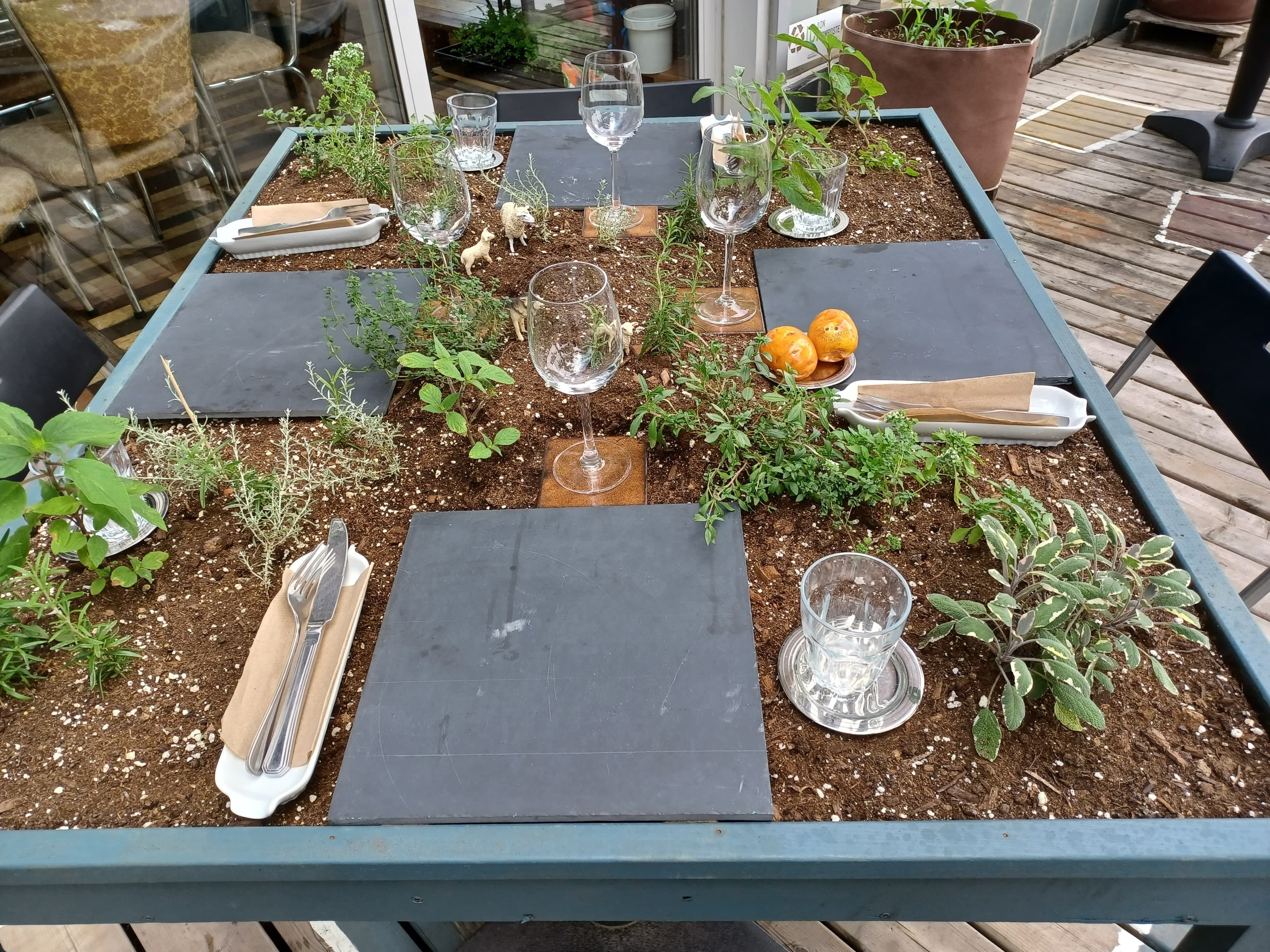 Ces tables se rempliront encore plus de fines herbes avec le temps afin de susciter vos sens et vous permettre d’agrémenter vos plats comme bon vous semble.