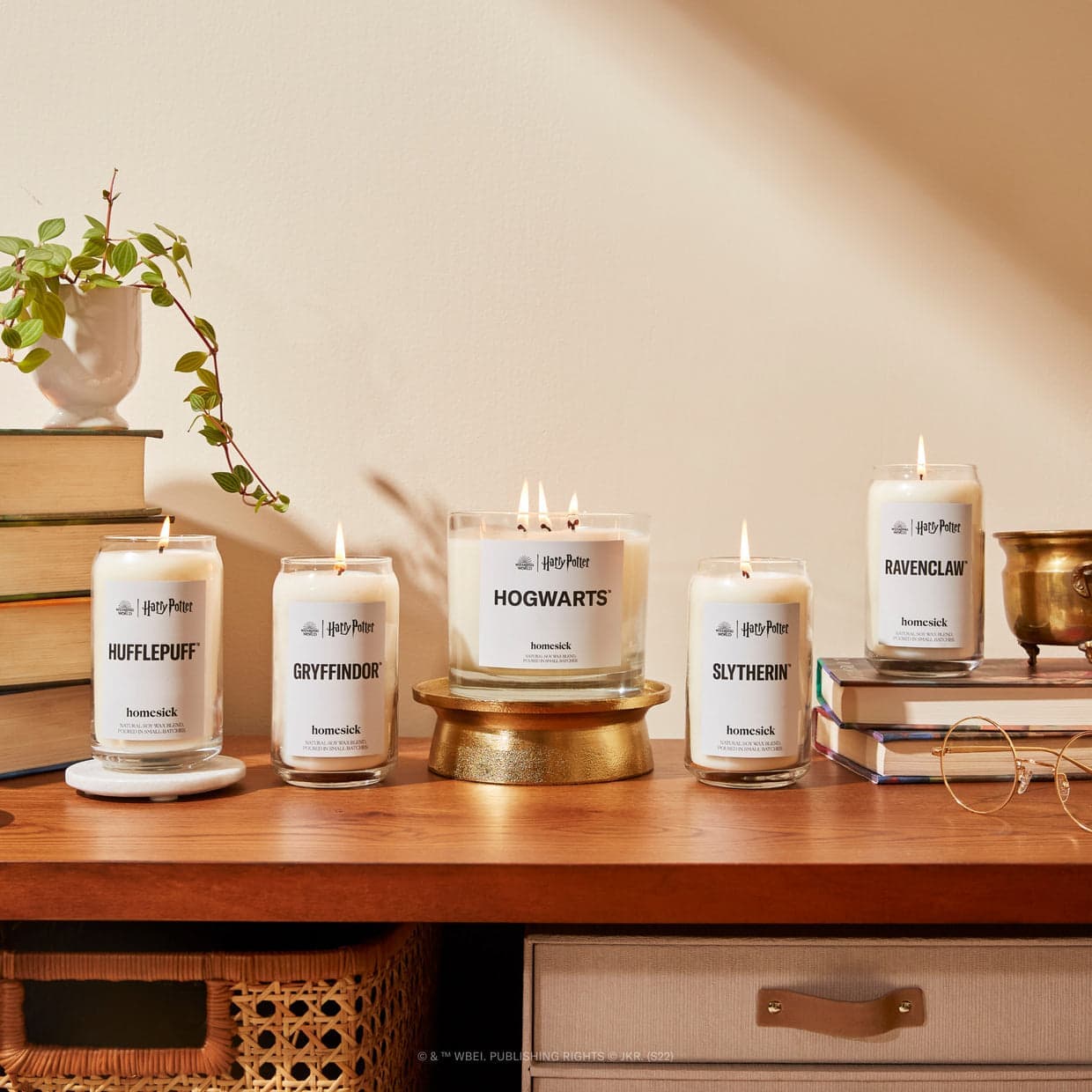 Cette collection exclusive comprend cinq nouvelles chandelles dignes de la magie du monde d’Harry Potter. Il y a Gryffondor, Poufsouffle (Hufflepuff), Serdaigle (Ravenclaw) et Serpentard (Slytherin).