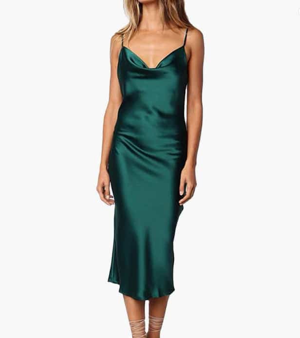 Robe en satin à bretelles spaghetti, 35$ chez Amazon