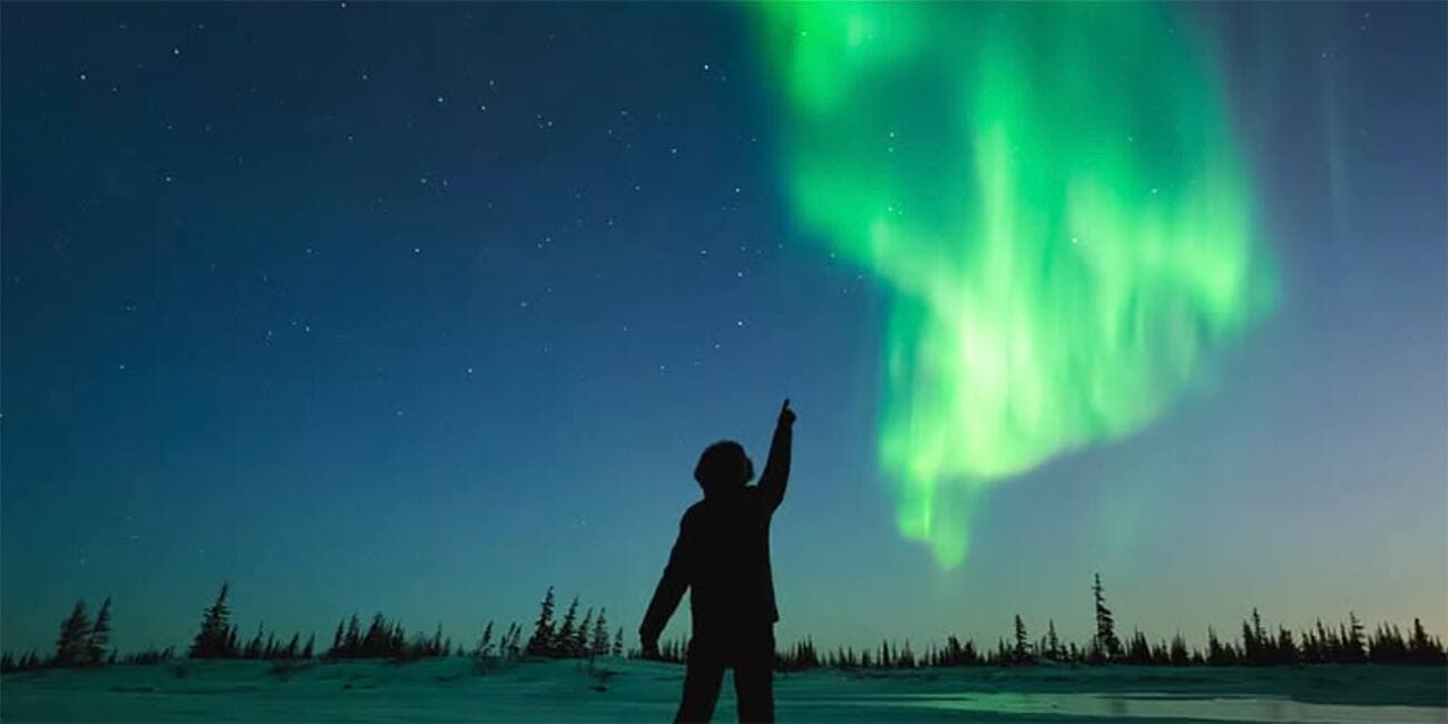 Churchill, au nord du Manitoba, est l’un des meilleurs endroits pour voir les aurores boréales, grâce à l'emplacement isolé de la ville et sa situation sous l'ovale auroral de l'hémisphère nord, une zone circulaire caractérisée par une activité géomagnétique élevée.