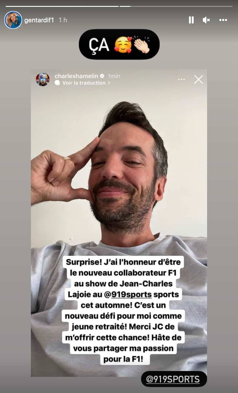 Eh bien mercredi matin, Charles Hamelin a dévoilé son tout nouveau projet en tant que «jeune retraité»: il se joint à l'émission radiophonique de Jean-Charles Lajoie (qui a d'ailleurs été le célébrant lors de son mariage) à titre de collaborateur pour tout ce qui touche à la formule 1.