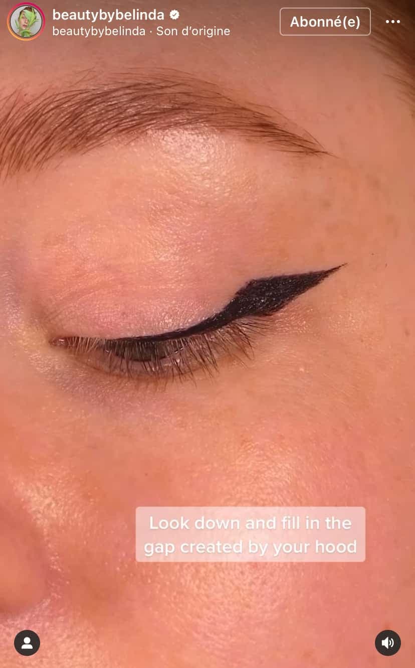 Sur Instagram et TikTok, une foule d'artistes maquilleuses ont partagé un truc facile pour pouvoir porter l'œil de chat, même si votre paupière n’est pas visible!