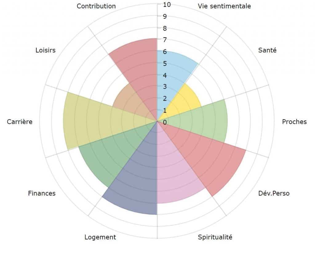 Il existe un outil de réflexion personnelle développé en coaching pour aider à avoir une vue d’ensemble des différentes sphères de notre vie et évaluer notre degré de satisfaction face à chacune d'entre elles.