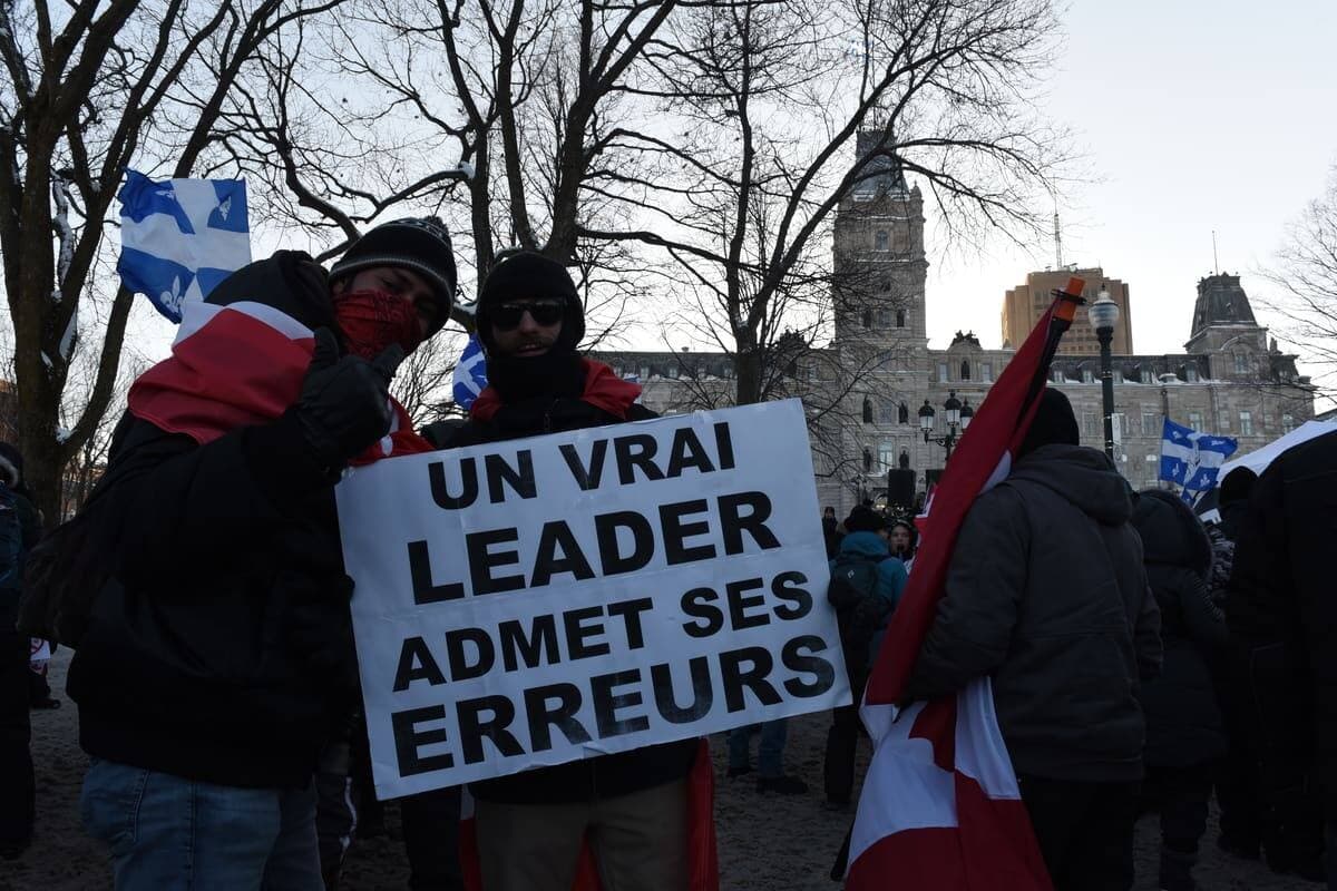 « Ça va être le temps de reprendre les libertés qu’ils nous ont enlevé », a ensuite lancé Kévin Bilodeau, organisateur du convoi qui partait de la Beauce, samedi matin. Le coordonnateur du Parti populaire du Canada (PPC) à Québec, Daniel Brisson, a quant à lui nié la crise sanitaire.