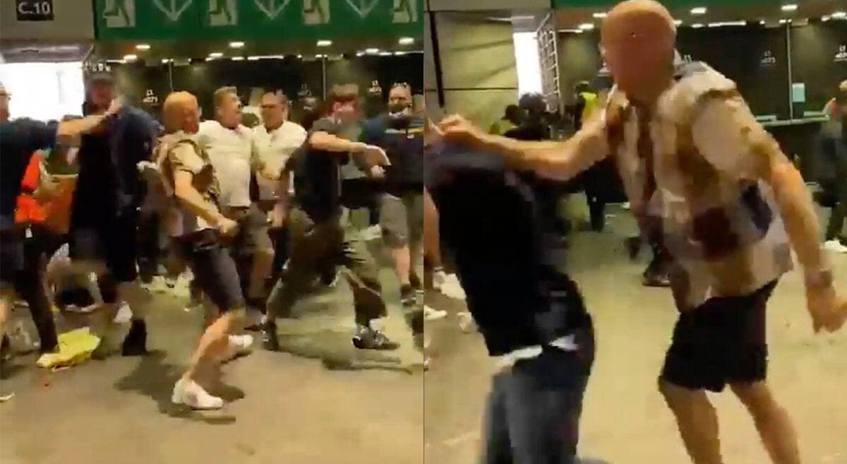 Sur les images, on peut voir un homme se retrouver au sol et recevoir plusieurs coups à la tête avant que la sécurité soit capable de le sortir de la mêlée.