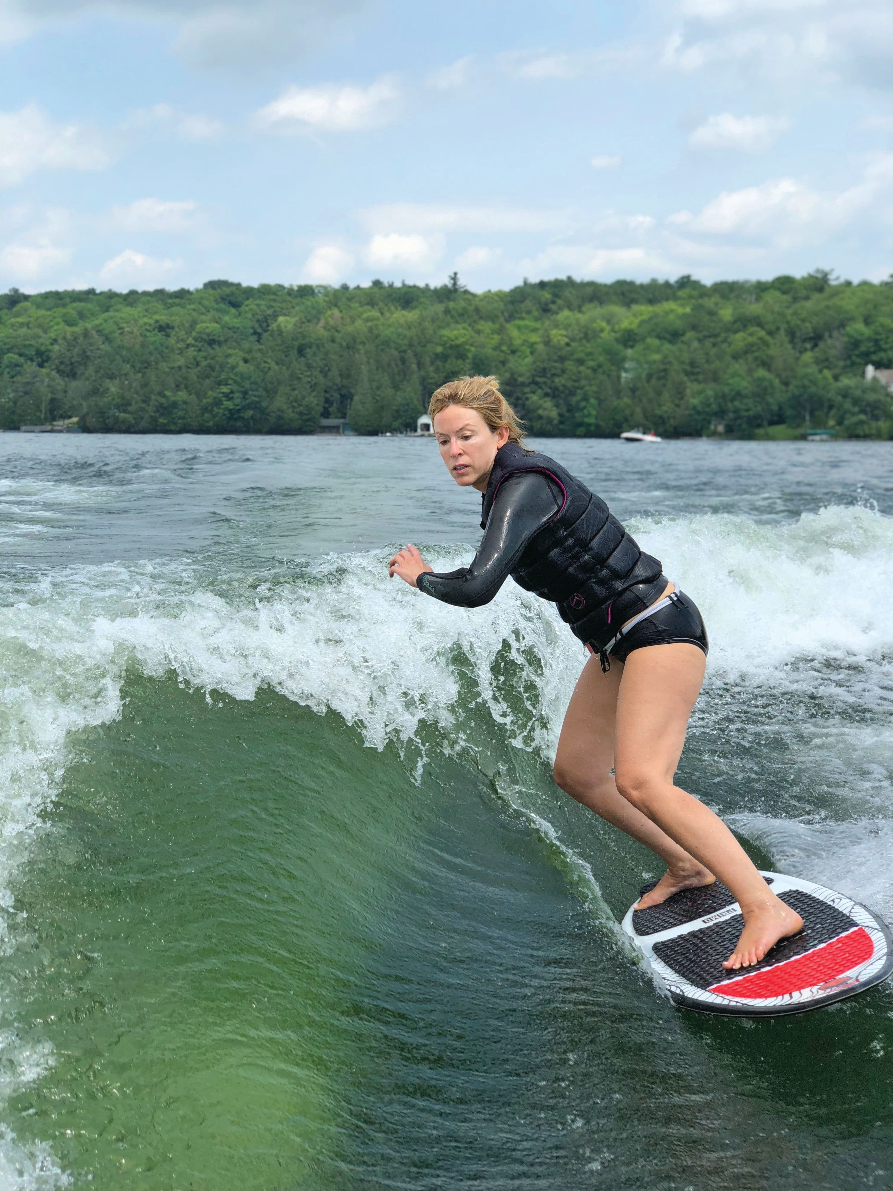«Quand arrive l’été, une des choses que j’aime le plus faire, c’est nettement du surf. J’ai commencé ce sport il y a environ 12 ans, mais j’avoue que je suis restée au même niveau depuis 10 ans. En fait, je suis le genre de fille qui se débrouille bien dans tout, mais qui n’excelle dans rien. (rires) À mes débuts, j’étais même meilleure que mon chum, alors qu’aujourd’hui, il est plus doué que moi. Il y a quelques jours, j’en ai fait et je suis tombée tellement souvent que ça m’a un peu découragée, mais qu’importe: j’adore le surf et tant pis si je reste au même niveau!»