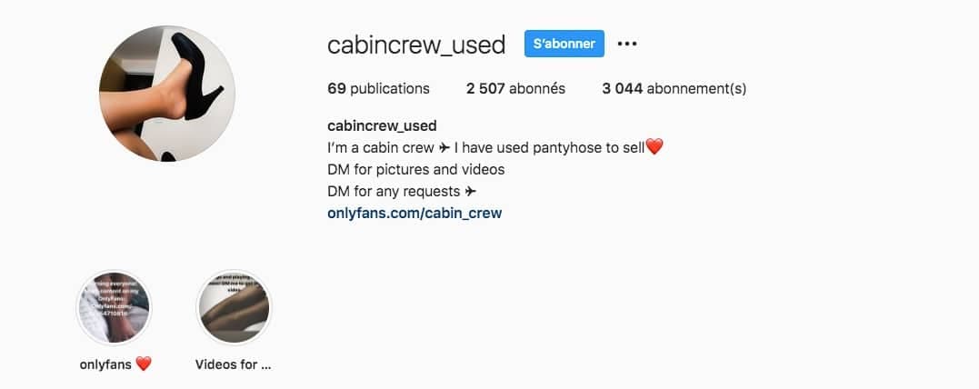 Des comptes comme @cabincrew_used sur Instagram se sont aussi lancés dans l’industrie de la revente de collants et de talons hauts.