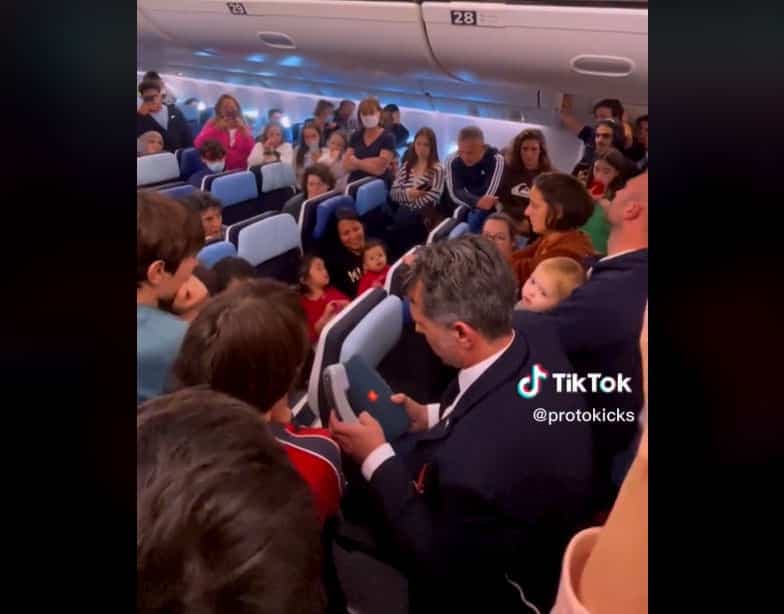 Selon une vidéo TikTok publiée par @protokicks et aimée plus de 42 000 fois, même les agents de bord ont participé à tout brancher afin de voir le match en direct du Qatar.