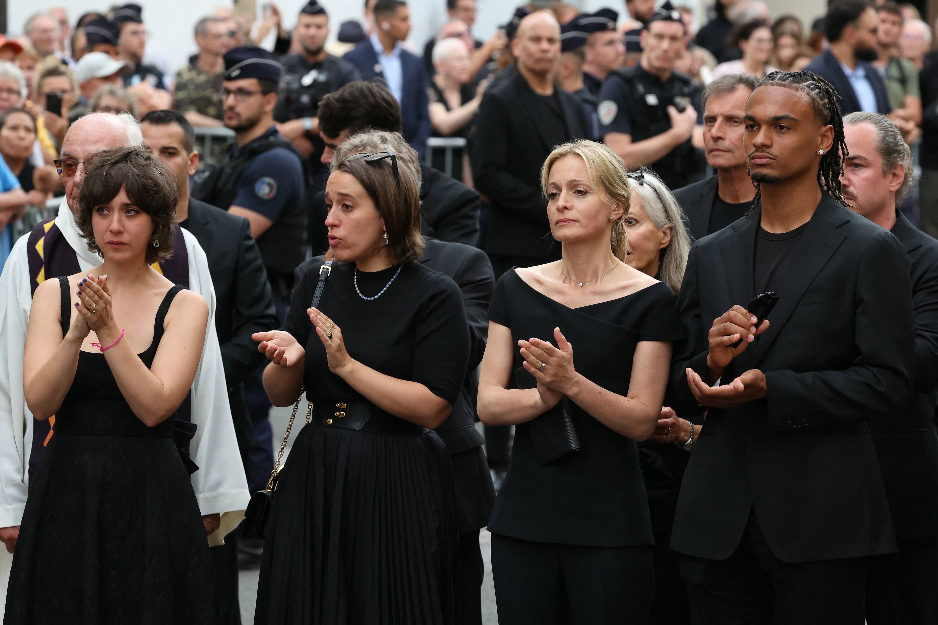 Sur le parvis de l’église Saint-Roch, dans le 1er arrondissement de Paris, sa conjointe des dernières années, la journaliste Audrey Crespo-Mara, accompagnée de ses fils, Sekou et Lamine, a retrouvé les enfants de l’animateur, Manon, Ninon et Gaston, avec leurs conjoints et conjointe respectifs. Ils ont été les premiers à entrer dans l’église.