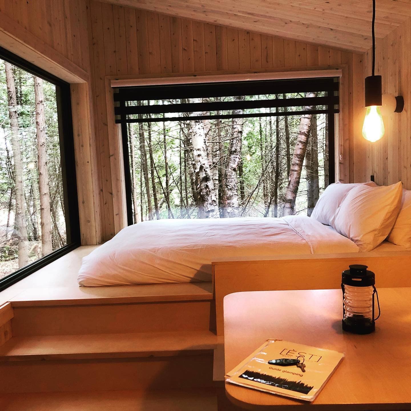 La première peut accueillir jusqu'à deux personnes. Les éco-cabines Thuya se trouvent dans une forêt dense et mature de cèdres, qui garantissent votre intimité tout au long de votre séjour.