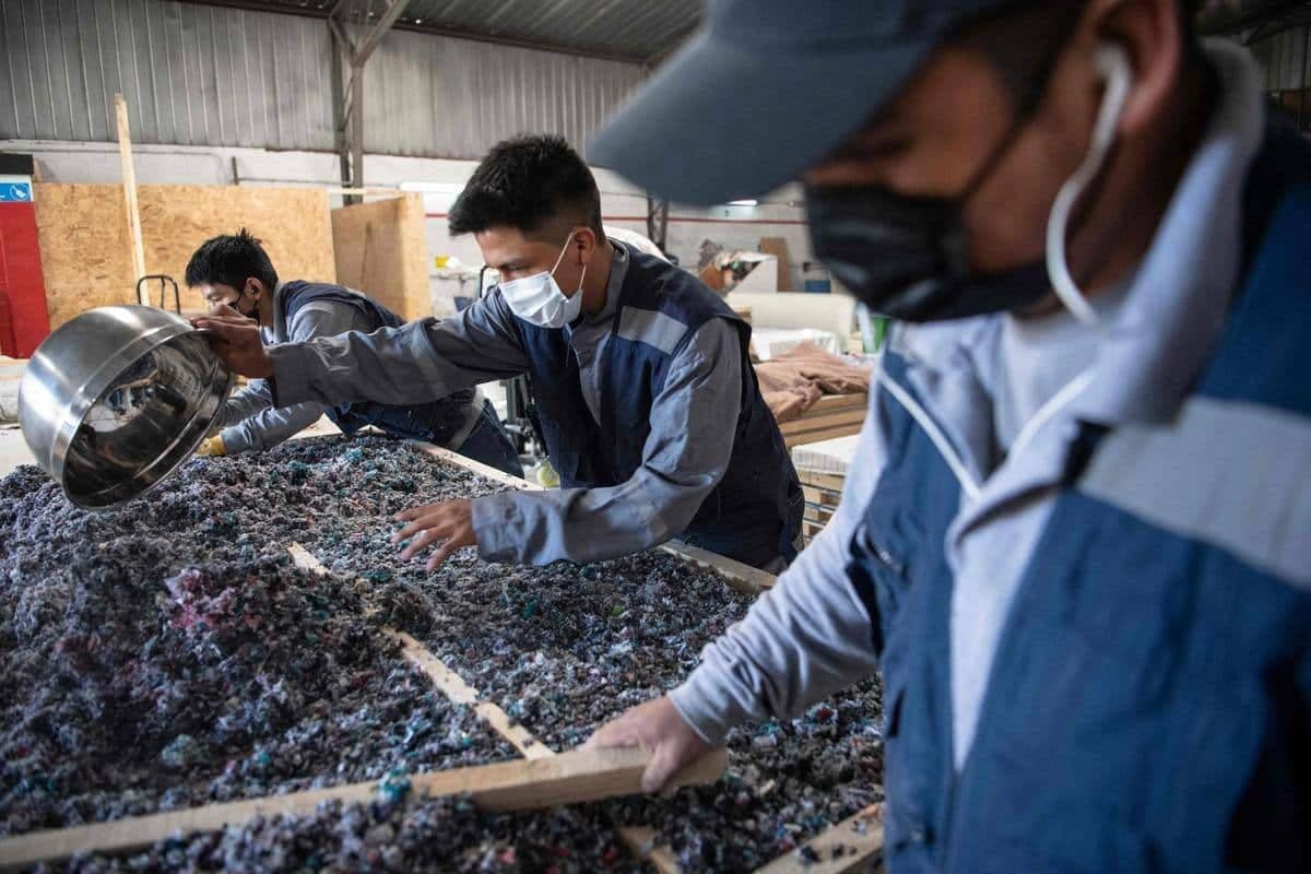 Dans son entreprise d’Alto Hospicio, fondée en 2018, Franklin Zepeda traite jusqu’à 40 tonnes de vêtements usagés par mois. Les habits synthétique et en polyester sont séparés des vêtements en coton, puis servent à fabriquer des panneaux isolants pour le bâtiment.