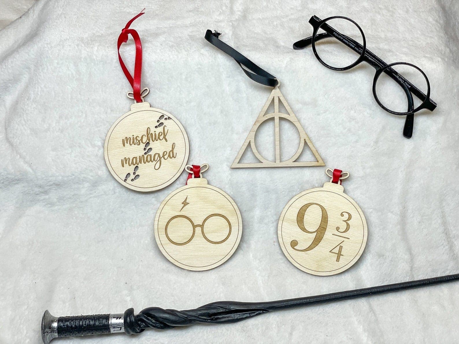 Ensemble de 5 ornements Harry Potter en bois - 35$