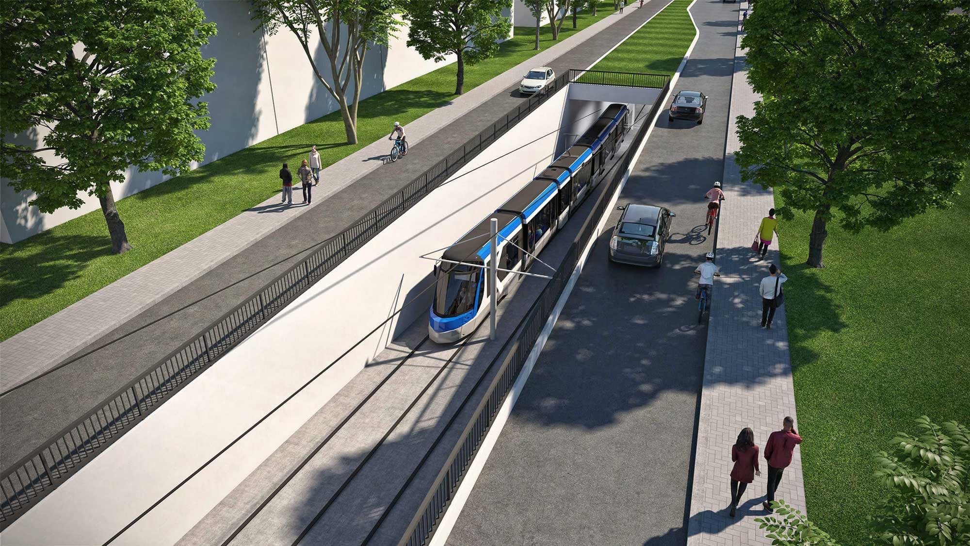 Des travaux préparatoires de reconstruction du chemin des Quatre-Bourgeois, surplombant l’autoroute Henri-IV, ont lieu dans cet axe où le tramway doit passer. Ce chantier est évalué à 61 millions $: 46 millions $ à la charge du ministère des Transports et 15 millions $ à celle du municipal.