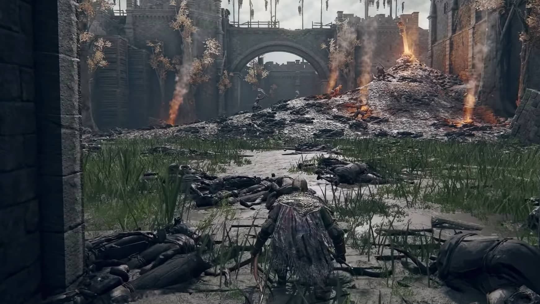 La vidéo nous fait explorer Castle Mourne, un château médiéval où les horreurs abondent. Situé dans la Weeping Peninsula dans le sud de Limgrave, cet endroit occupé par des créatures léonines chimériques et d’autres monstres horrifiques est l'un des nombreux mini-donjons qu’on peut retrouver à travers le jeu.
