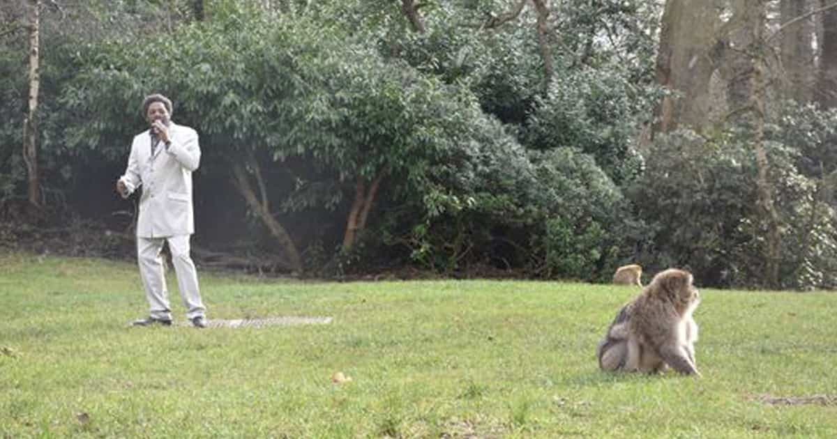 Dimanche dernier, celui qui gagne sa vie en reprenant les plus grands succès de l'interprète de Let’s Get It On s’est donc donné en spectacle pour un public de singes.
