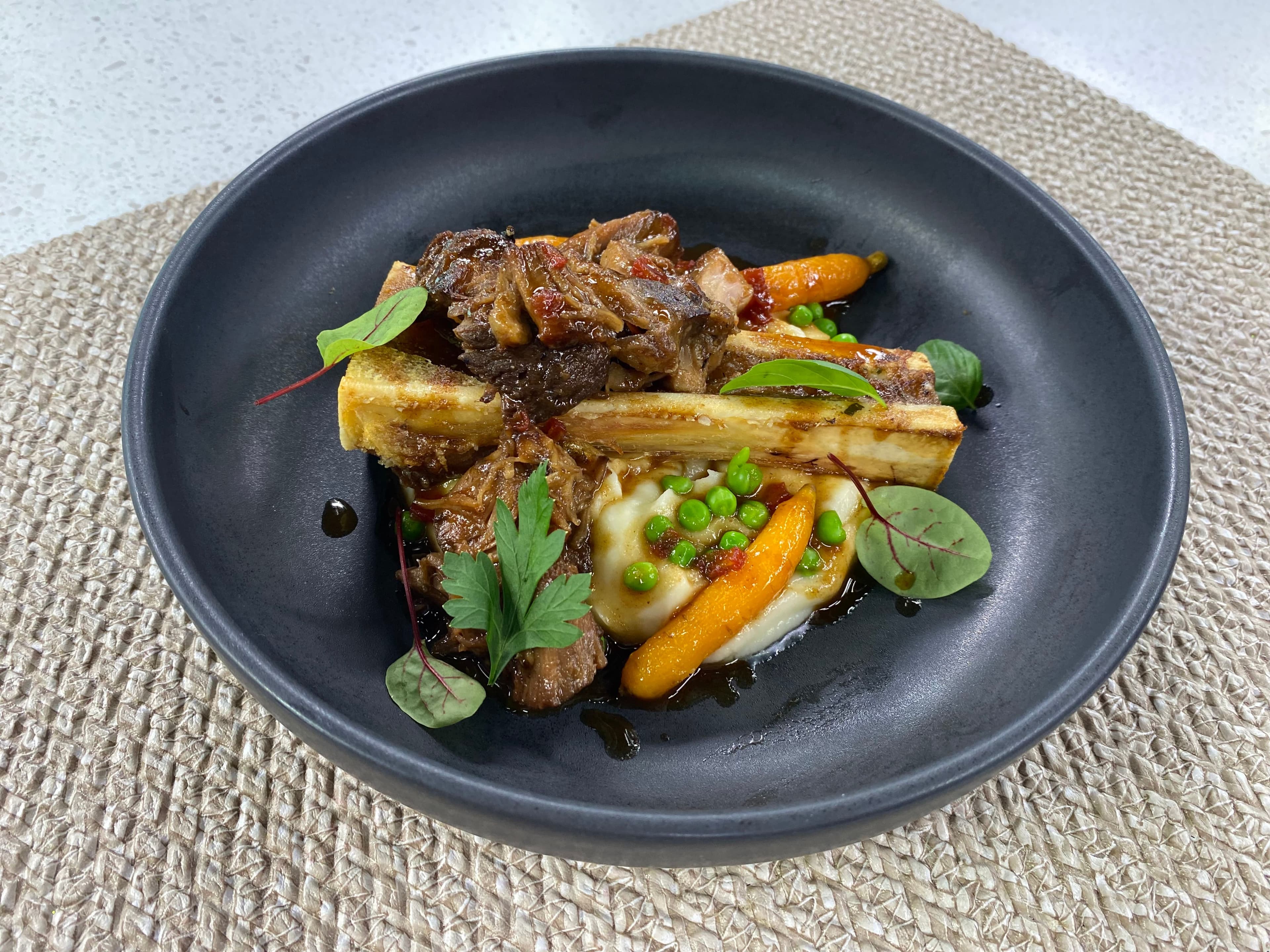 Duo d’osso bucco à l’ail et au romarin sur os à moelle