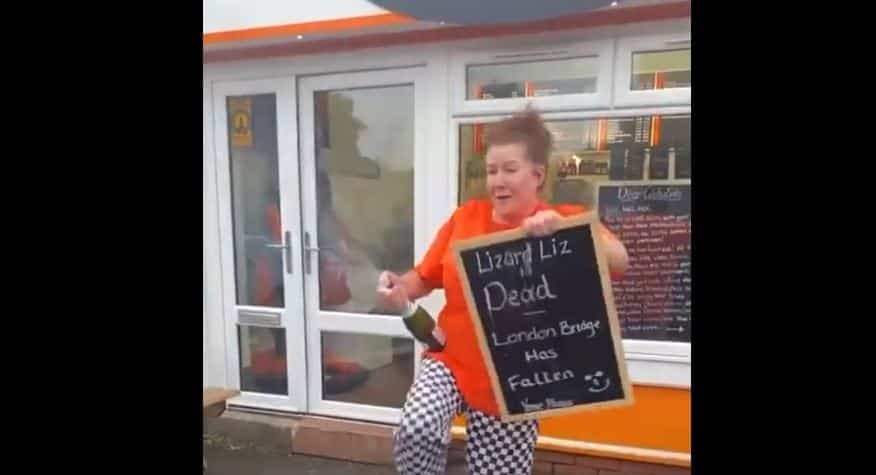 À la suite du décès d’Elizabeth II, jeudi, Jaki Pickett a été filmée en train de sabrer le champagne et de célébrer la mort de la reine. Dans la vidéo publiée sur les réseaux sociaux, on voit la propriétaire du restaurant crier de joie: «Lizard Liz is dead! London Bridge has fallen!», tout en tenant un petit tableau noir sur lequel ces deux phrases sont écrites, assorties d’un émoji souriant.